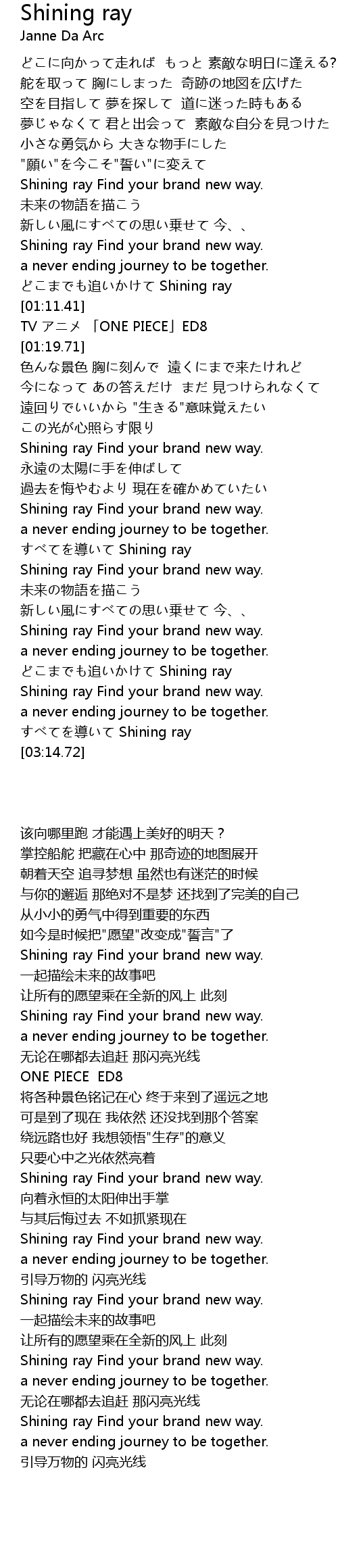 | [03:01.13] | どこまでも追いかけて Shining ray |