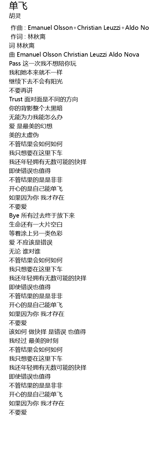 | [00:14.69] | Pass zhè yī cì wǒ bù xiǎng péi nǐ wán |