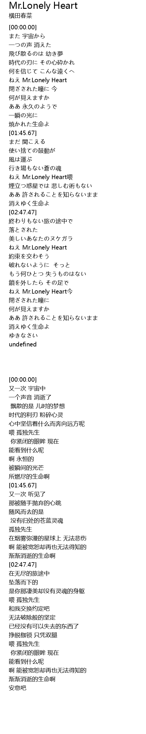 | [02:21.89] | Mr. Lonely Heart wèi |