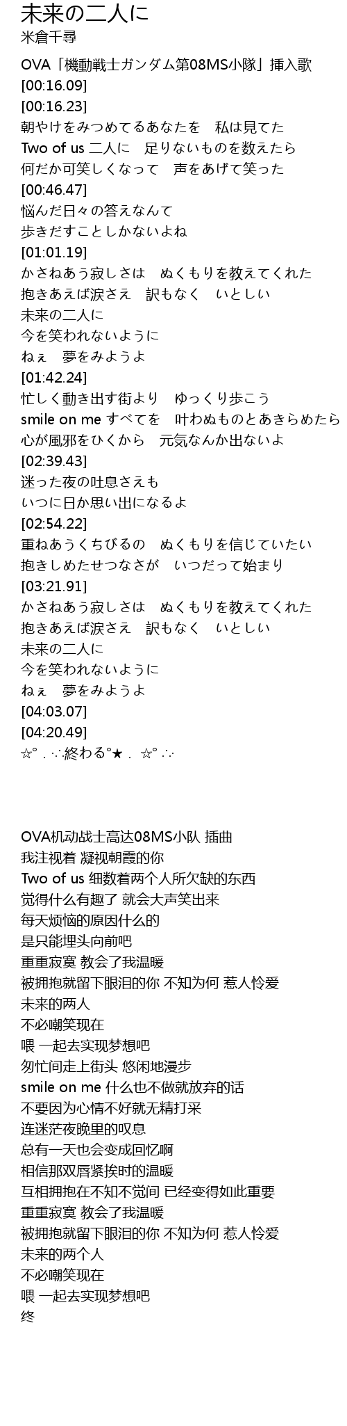 | [00:01.13] | OVA「機動戦士ガンダム第08MS小隊」挿入歌 |