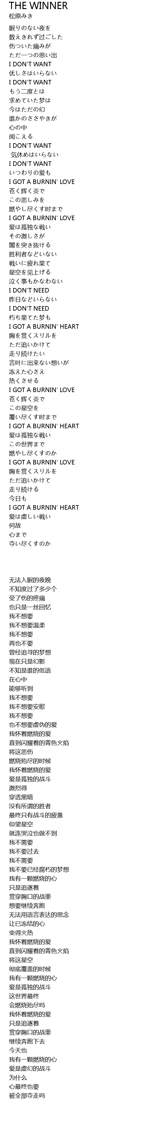 | [03:28.500] | I GOT A BURNIN' HEART |