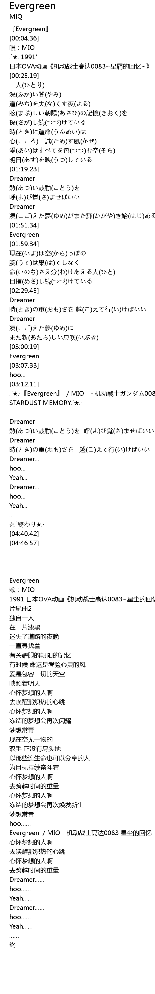 | [03:12.54] | .`★.·『Evergreen』 /MIO - 机动戦士ガンダム0083 STARDUST MEMORY.`★.· |
