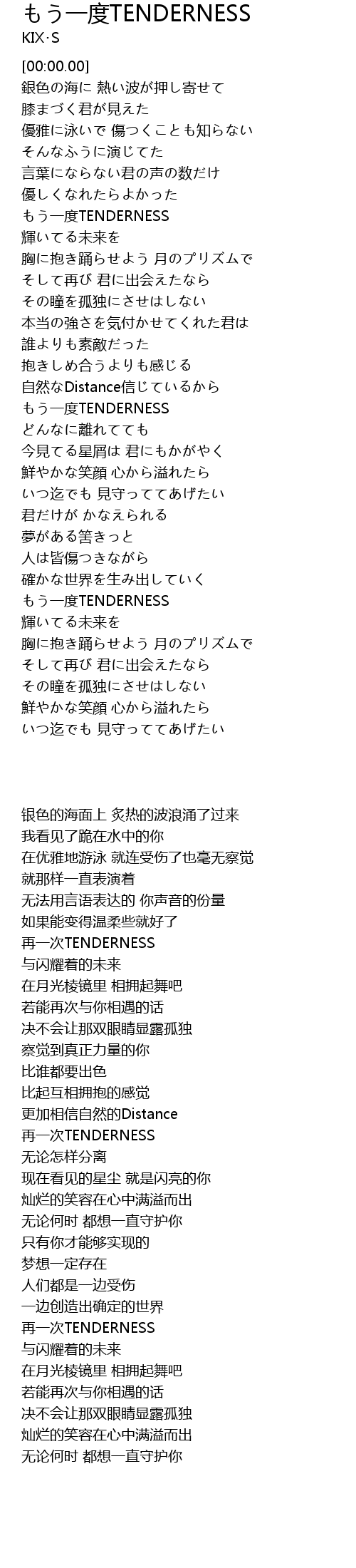 | [00:21.38] | 銀色の海に 熱い波が押し寄せて |