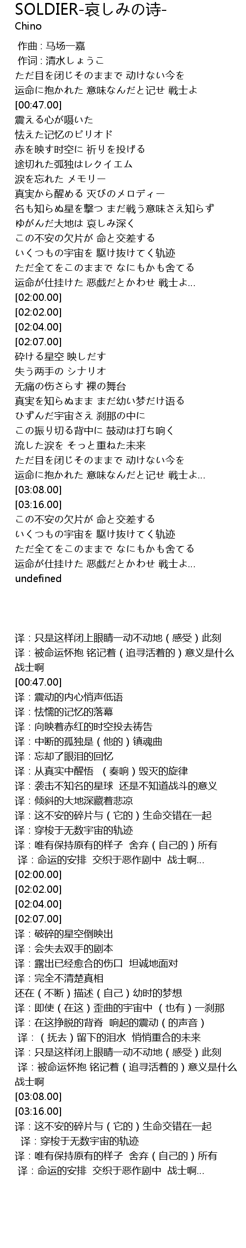 | [03:00.00] | 运命に抱かれた 意味なんだと记せ 戦士よ… |