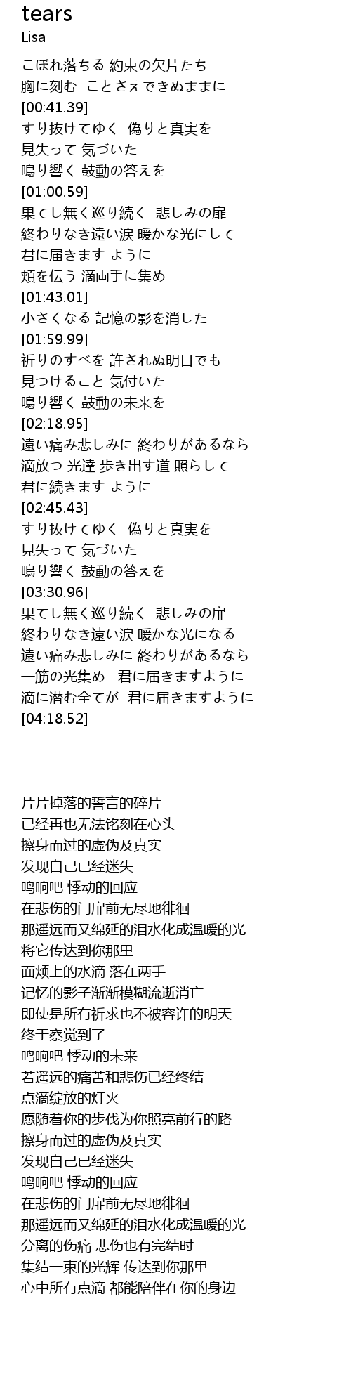 | [03:39.53] | 終わりなき遠い涙 暖かな光になる |