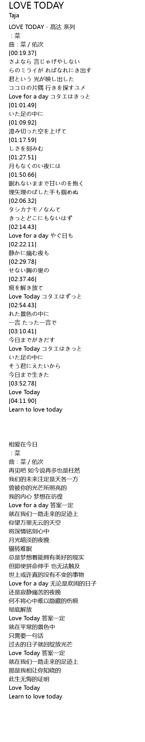 | [00:00.71] | LOVE TODAY gāo dá xì liè |