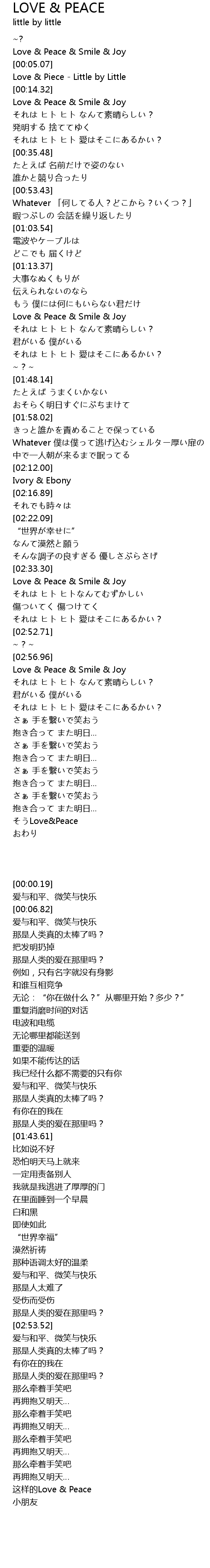 | [03:12.93] | Love & Peace & Smile & Joy |