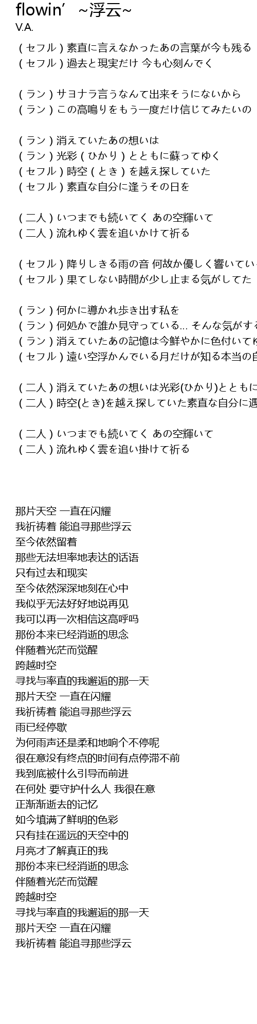 | (二人)流れゆく雲を追いかけて祈る | |