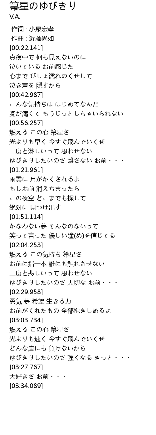 | [03:03.943] | 燃える この心 箒星さ |