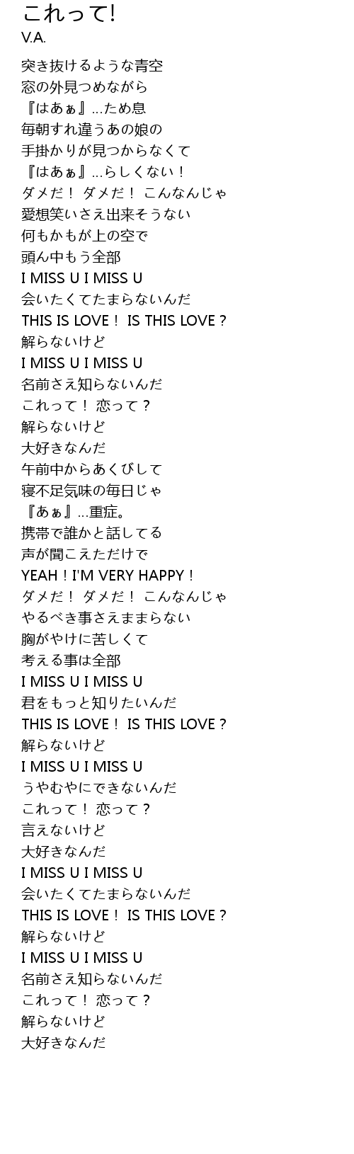 | [01:00.62] | THIS IS LOVE! IS THIS LOVE? |