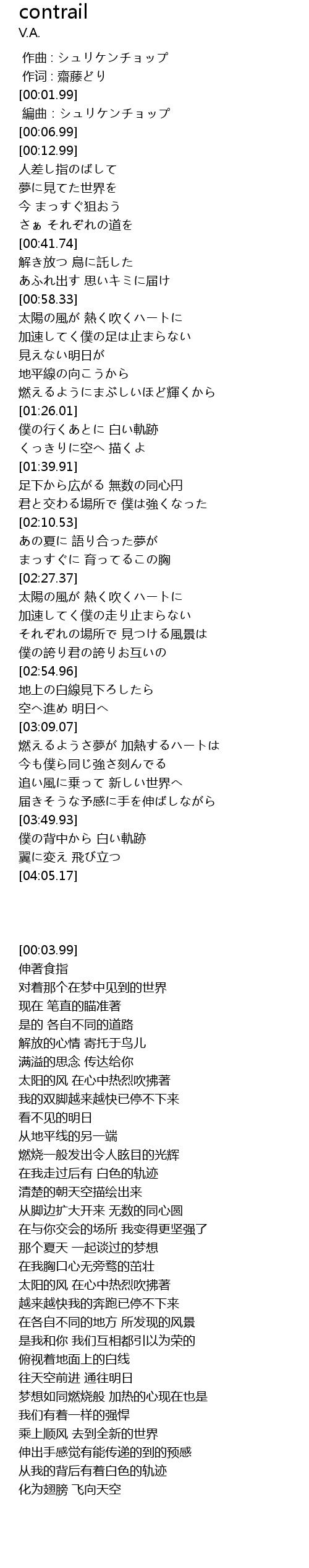 | [03:51.11] | 僕の背中から 白い軌跡 |