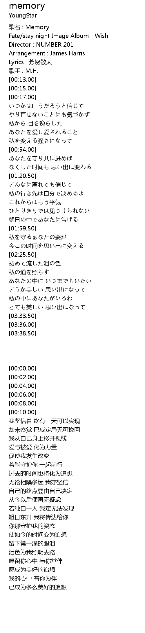| [00:02.00] | Fate/stay night Image Album - Wish |