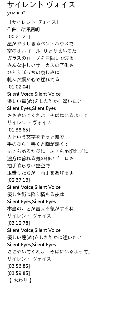 | [03:22.17] | Silent Voice, Silent Voice |