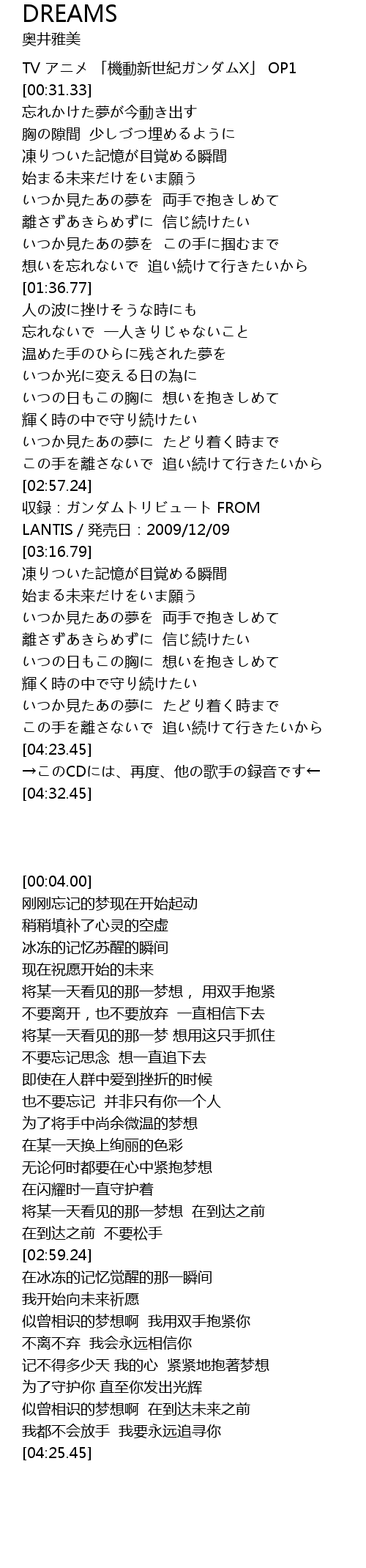 | [02:59.24] | 収録:ガンダムトリビュート FROM LANTIS/発売日:2009/12/09 |