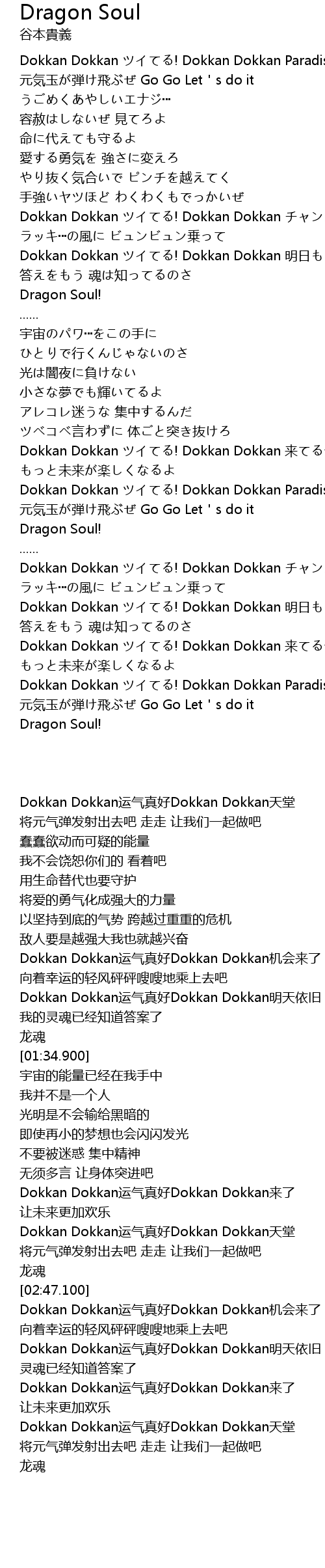 | [03:48.100] | Dokkan Dokkan ! Dokkan Dokkan Paradise |