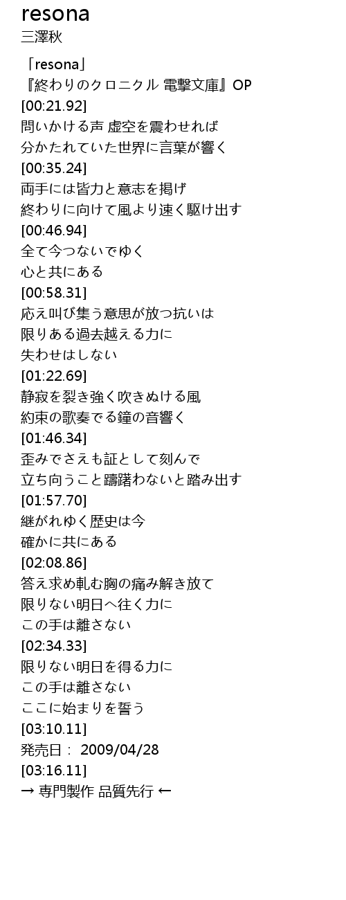 | [00:01.92] | 「resona」 |