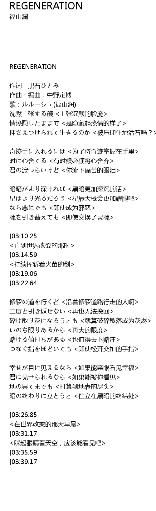 | [01:43.88] | 修罗の道を行く者 <沿着修罗道路行走的人啊> |