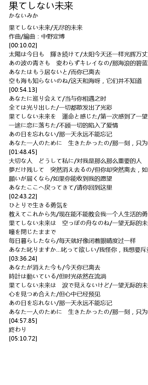 | [00:00.19] | 果てしない未来/无尽的未来 |