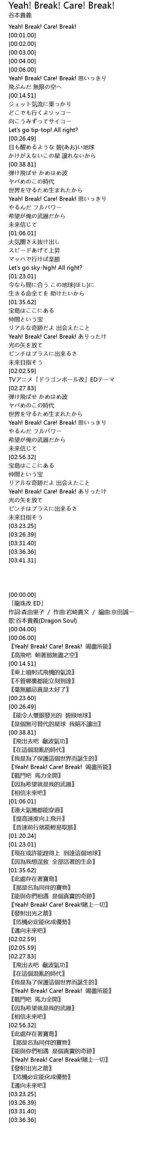 | [00:07.83] | Yeah! Break! Care! Break! sī |