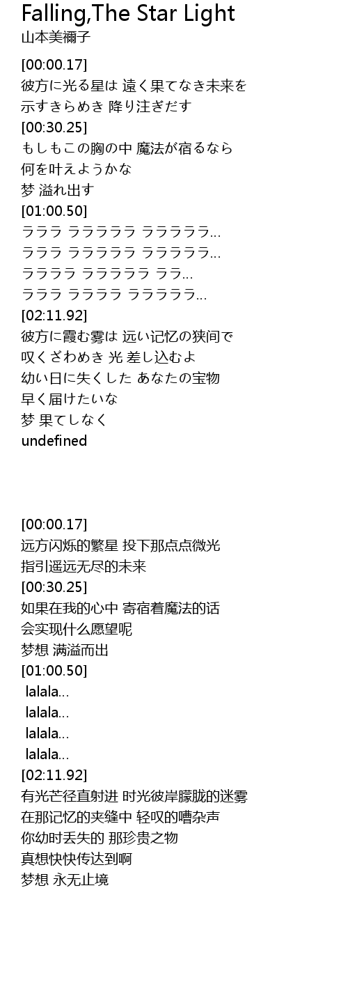 | Song | Falling,The Star Light |