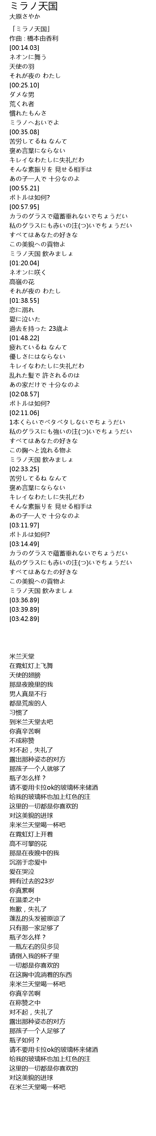 | [00:01.03] | 「ミラノ天国」 |