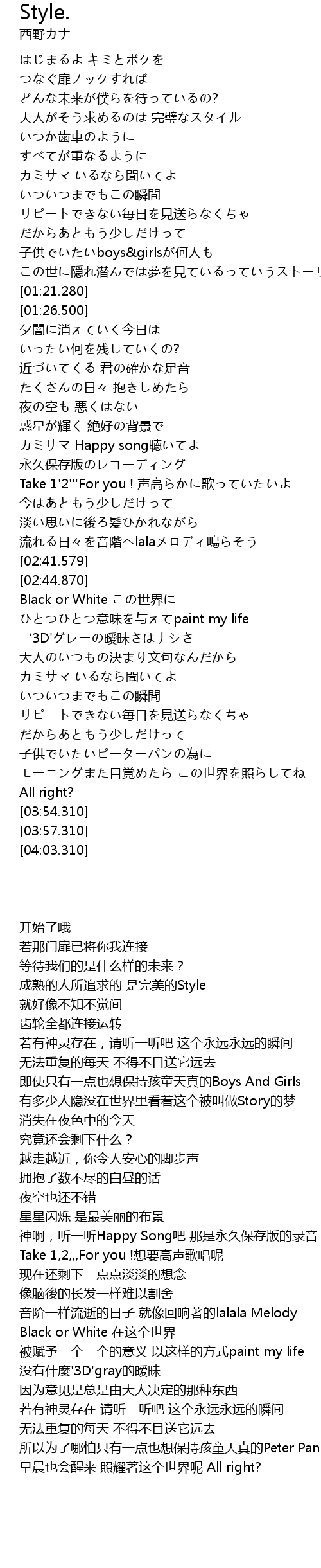 | [00:26.970] | 大人がそう求めるのは 完璧なスタイル |