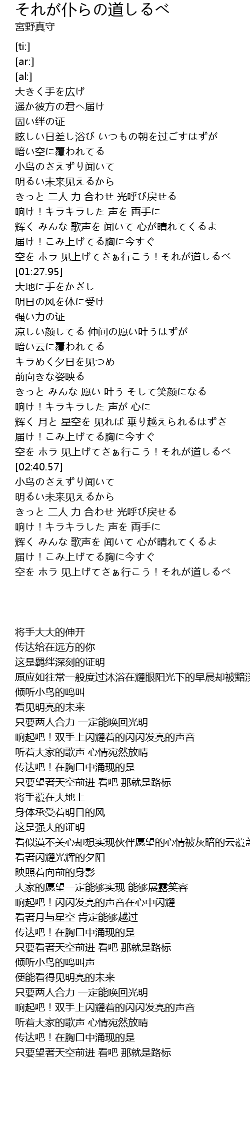 | [02:28.19] | 空を ホラ 见上げてさぁ行こう!それが道しるべ |