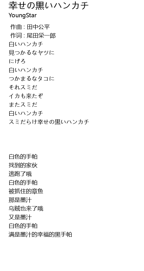 | [00:23.340] | スミだらけ幸せの黒いハンカチ |