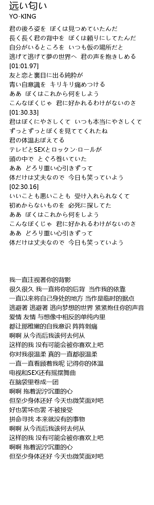 | [00:39.15] | 自分がいるところを いつも仮の場所だと |