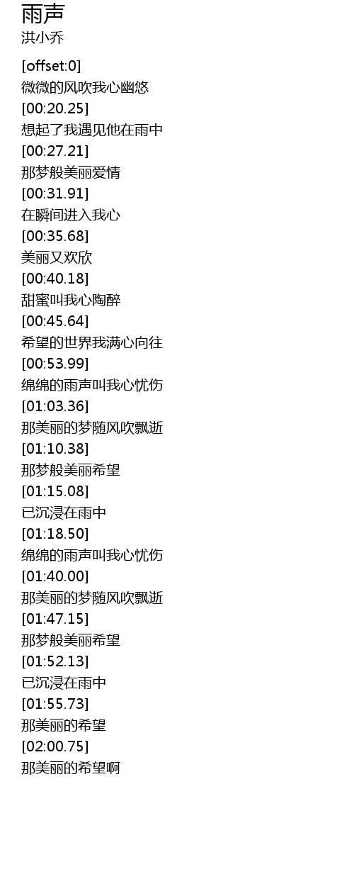 | [01:36.17] | 绵绵的雨声叫我心忧伤 |