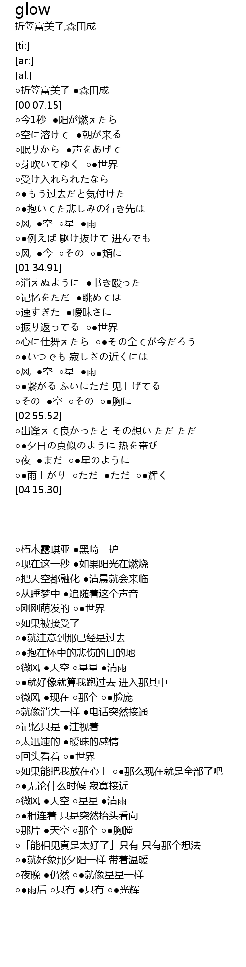 | [04:00.32] | ○●雨上がり ○ただ ●ただ ○●辉く |