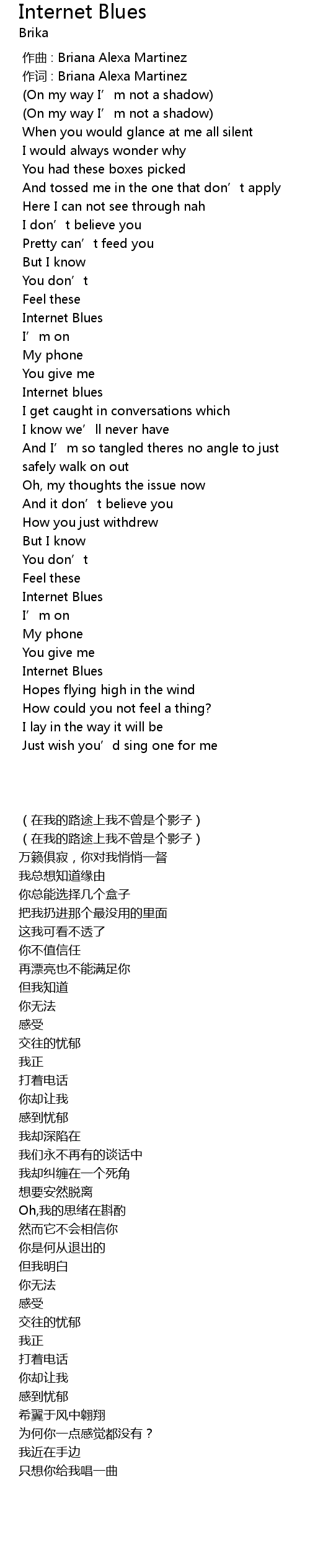 | [00:01.000] | 作词 : Briana Alexa Martinez |