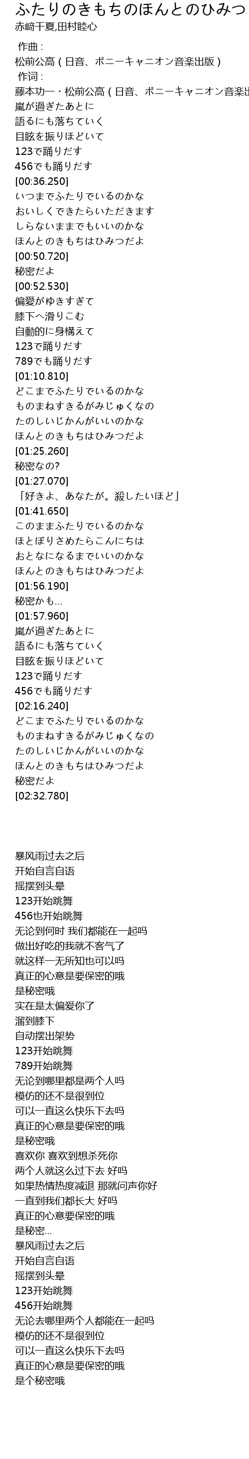 | [00:47.510] | ほんとのきもちはひみつだよ |