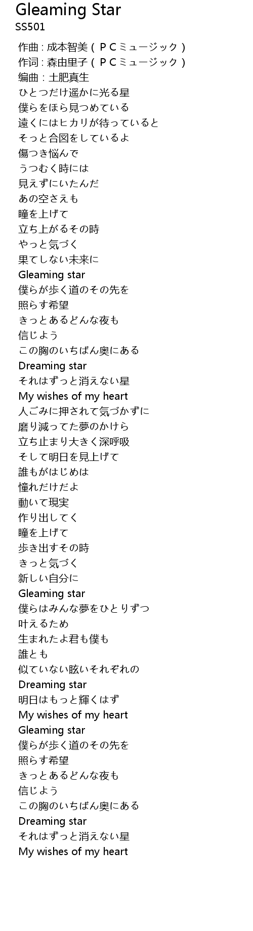 | [00:29.011] | ひとつだけ遥かに光る星 |