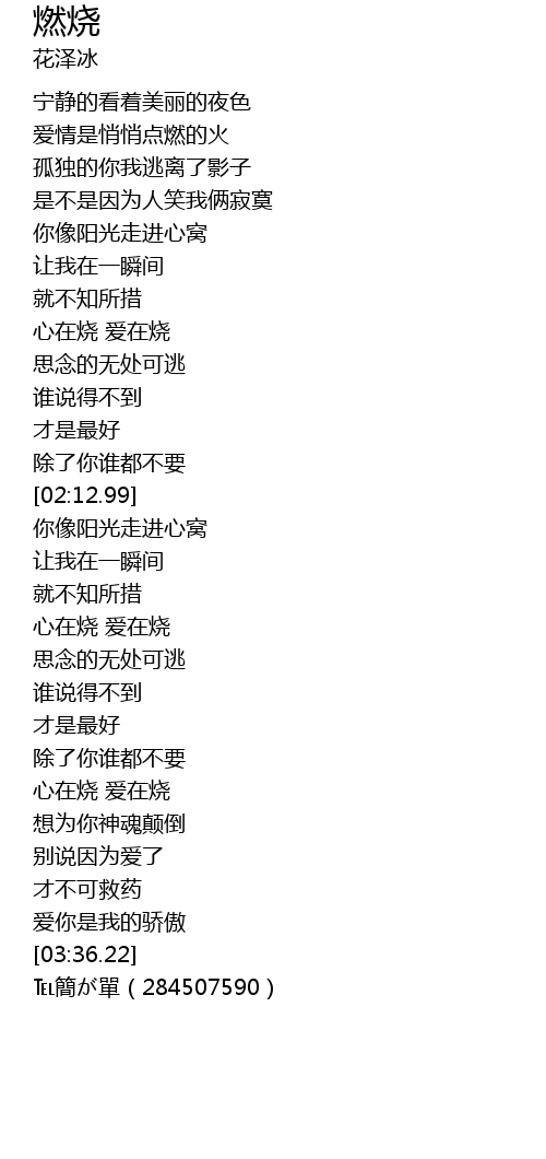| [02:54.31] | 心在烧 爱在烧 |
