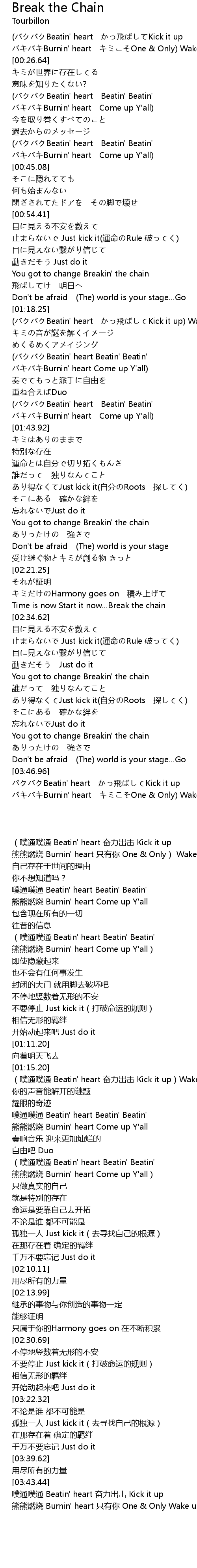 | [03:39.62] | You got to change Breakin' the chain |