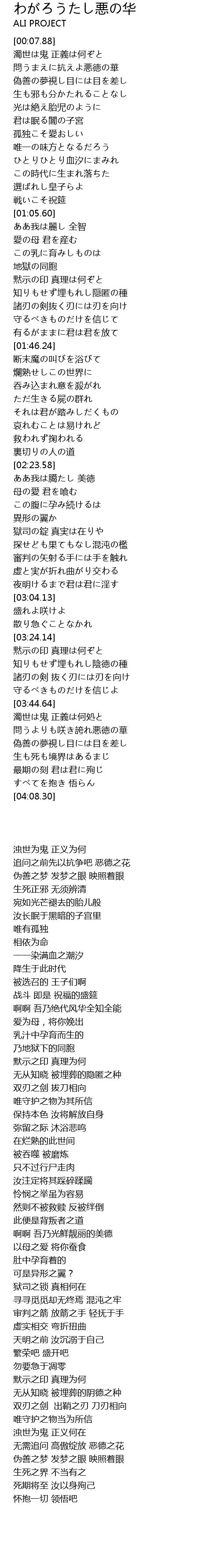 | [03:49.43] | 問うよりも咲き誇れ悪徳の華 |