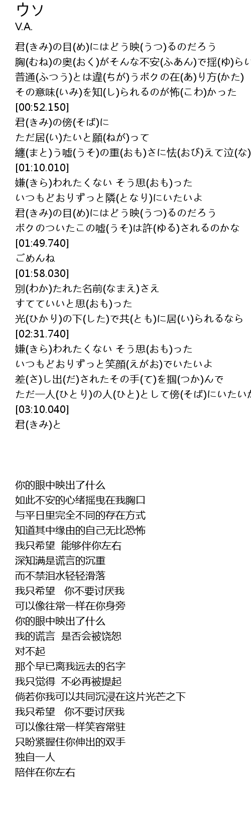 | [01:37.980] | ボクのついたこの嘘(うそ)は許(ゆる)されるのかな |