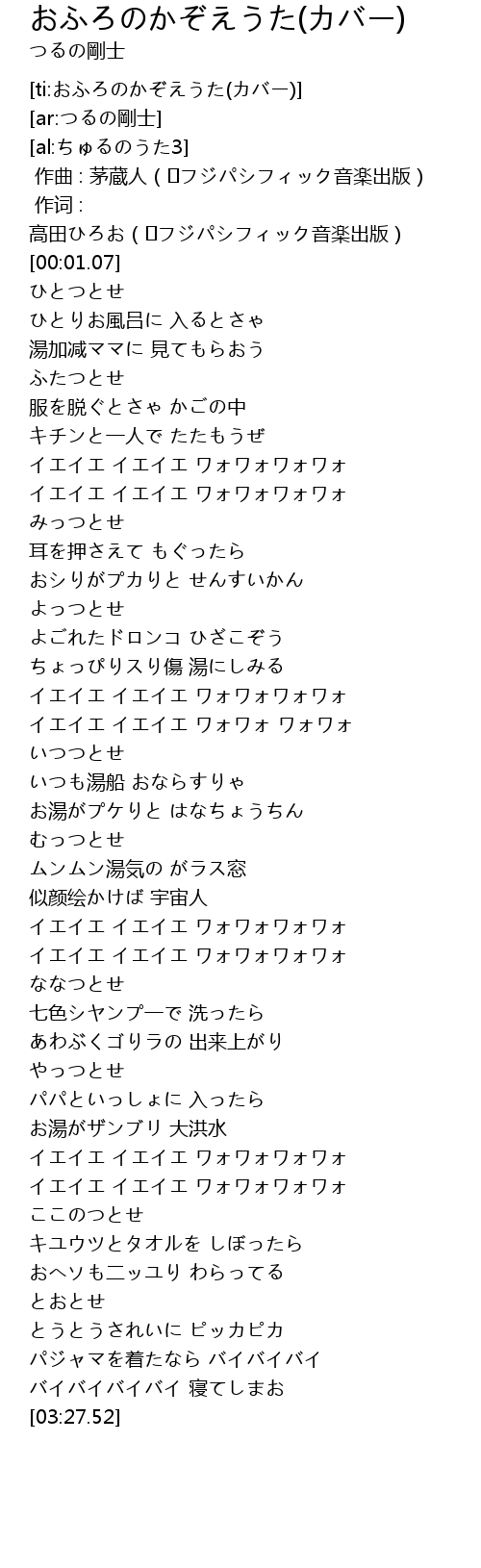 | [01:39.57] | いつも湯船 おならすりゃ |