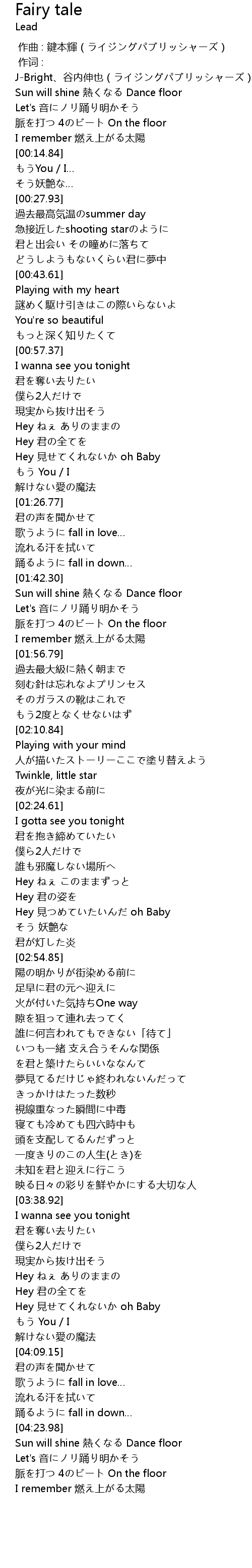 | [04:24.22] | Sun will shine 熱くなる Dance floor |