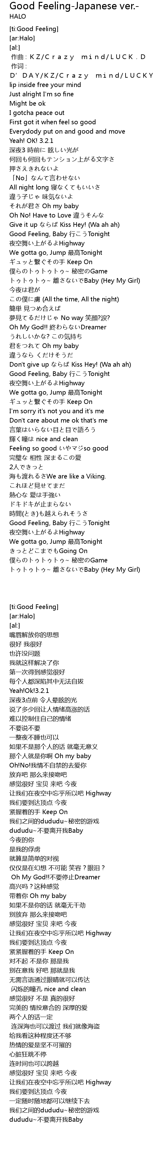 | [02:41.48] | Good Feeling, Baby xing Tonight |