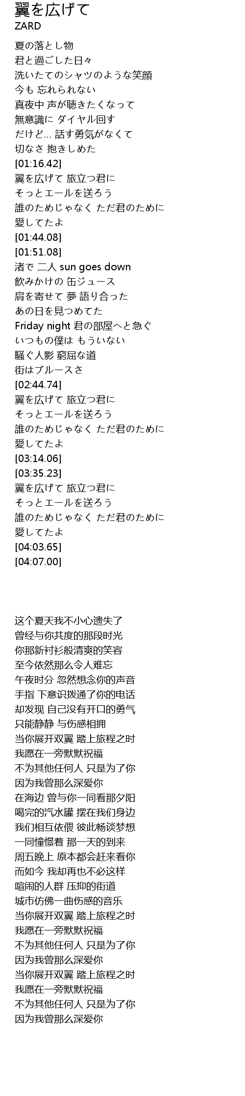 | [02:46.74] | 翼を広げて 旅立つ君に |