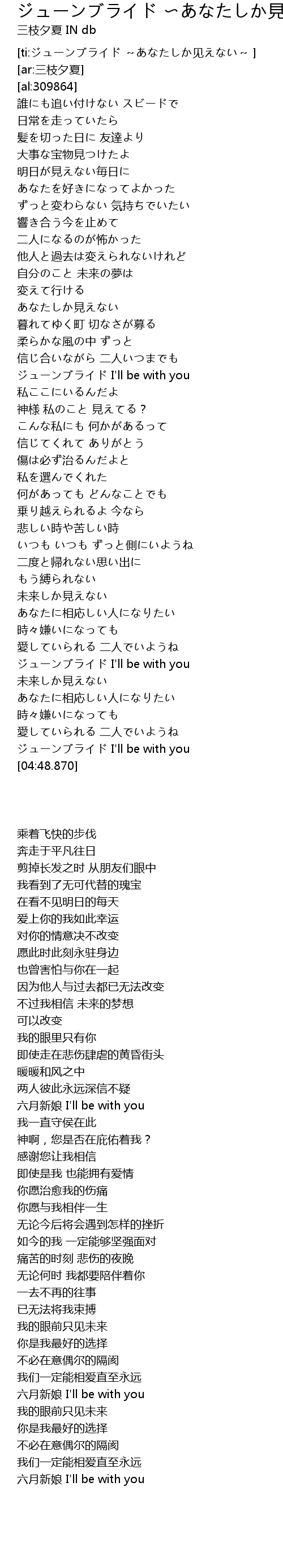 | [04:43.380] | ジューンブライド I'll be with you |
