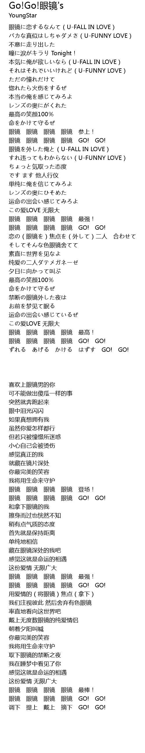 | [02:39.54] | 眼镜 眼镜 眼镜 眼镜 GO! GO! |