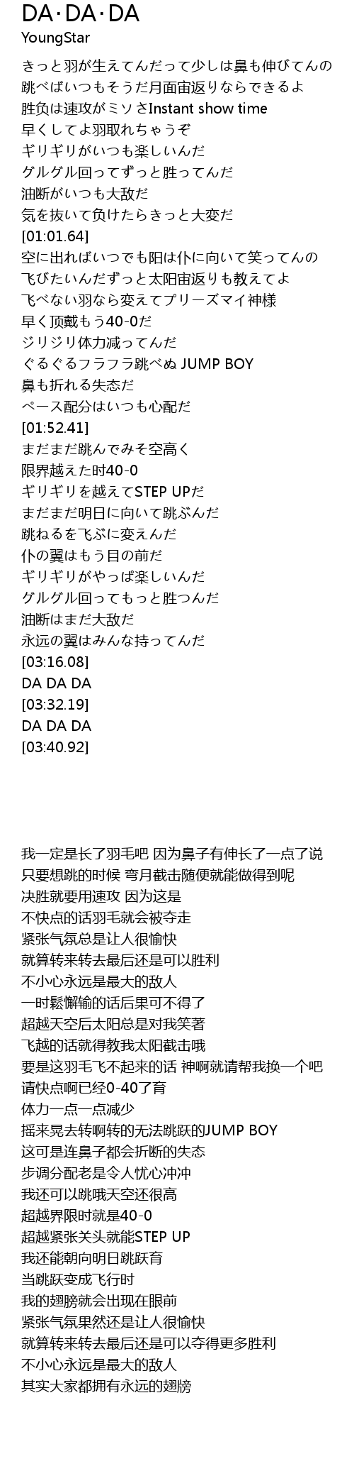| [02:48.29] | まだまだ明日に向いて跳ぶんだ |