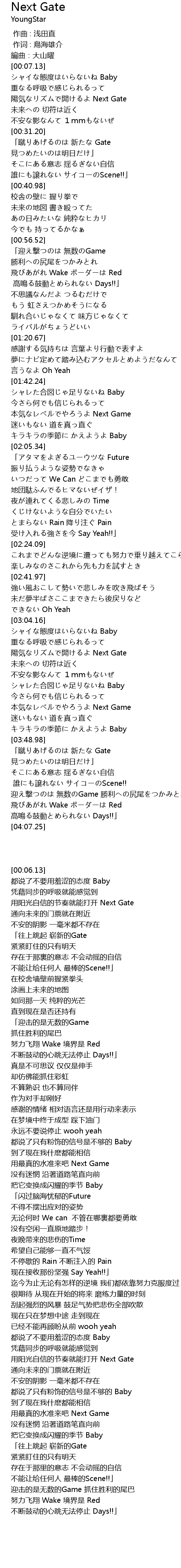 | [00:39.19] | 誰にも譲れない サイコーのScene!!」 |