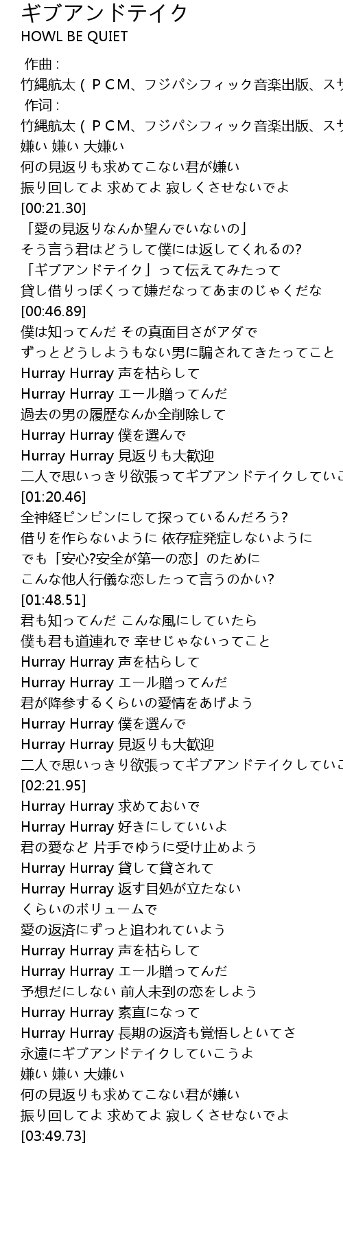| [02:55.24] | Hurray Hurray 貸して貸されて |