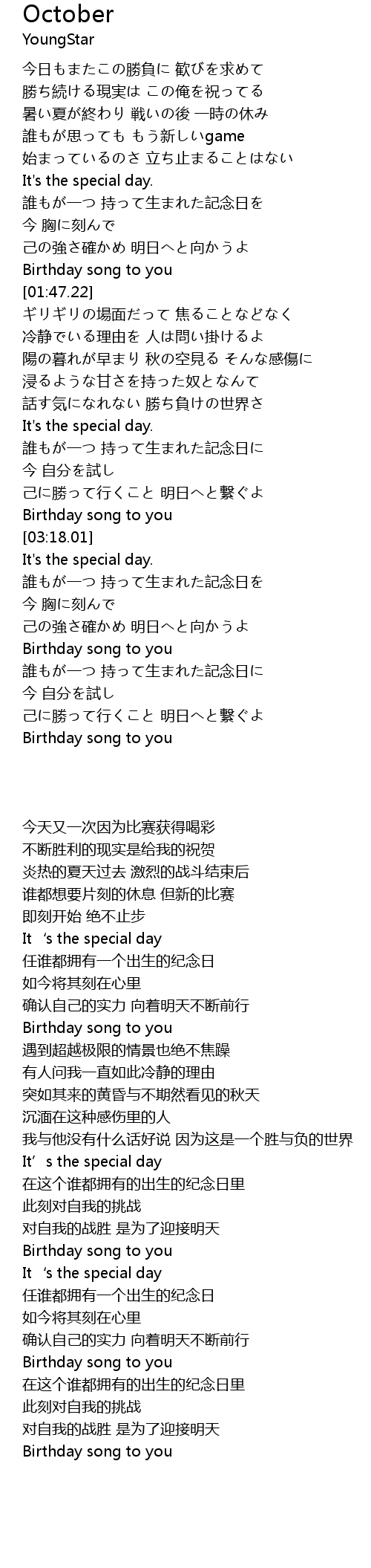 | [01:22.54] | shuí yī chí shēng jì niàn rì |