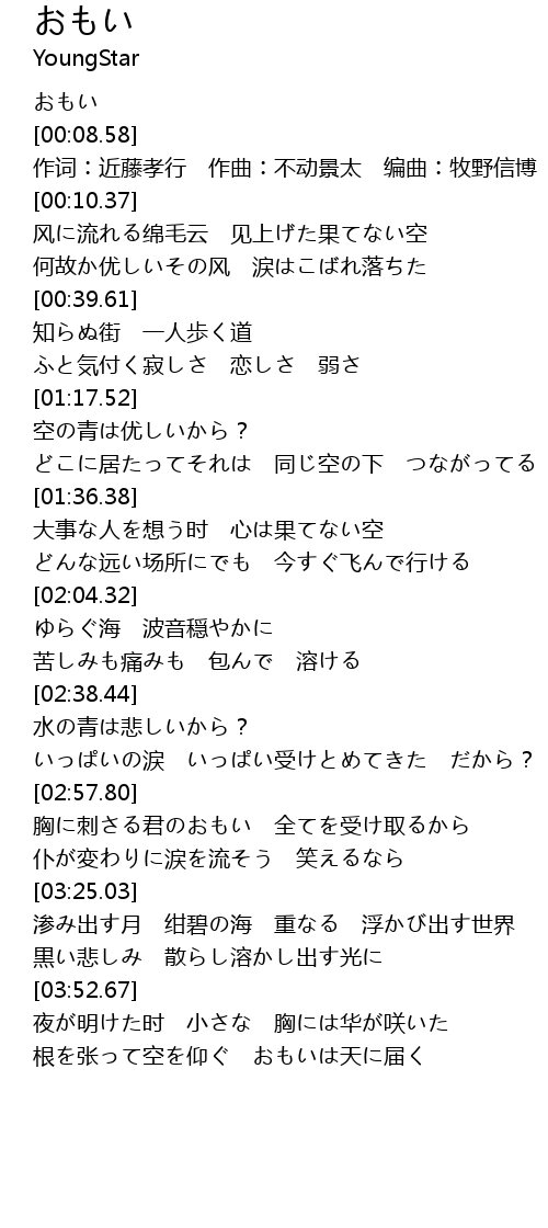 | [00:05.68] | おもい |