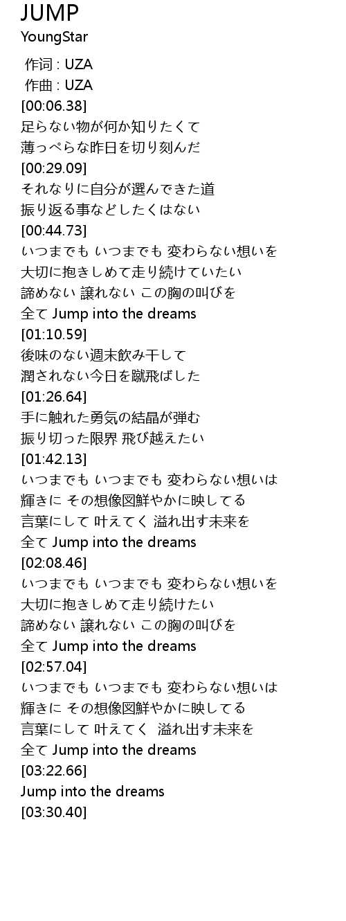 | [03:17.39] | 全て Jump into the dreams |